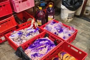 Při kontrole našla inspekce mimo jiné sedmdesát kilogramů vepřových střev, k nimž chyběla jakákoli dokumentace, a více než sto čtyřicet kilogramů mraženého masa s viditelnými známkami poškození chladem. V jedné z prodejen byly v plastové přepravce uloženy části zvířete vydávané za kozí maso, což však podle veterinářů neodpovídalo skutečnosti. Zajištěno muselo být i přibližně pětadvacet kilogramů drůbeže napěchované do igelitových tašek. K tomu se přidalo deset kilogramů masných výrobků bez výrobce a několik nádob s neoznačenou krví. Všechny tyto produkty veterináři obarvili a nechali odvézt k neškodné likvidaci.